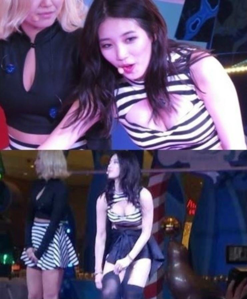 해당 게시물에는 미쓰에이가 지난 7일, 중국의 한 행사장에서 '허쉬( Hush)' 등의 무대를 펼치고 있는 모습이 담겨 있다. 특히 수지의 모습이 눈길을 끈다. 수지가 가슴골 노출 등 국내에서는 좀처럼 보기 어려웠던 파격적인 의상을 입고 섹시미를 강조했기 때문.