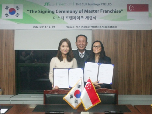 ㈜제이앤티의 컵푸드 브랜드 ‘더컵(THE CUP)은 9일 한국프랜차이즈산업협회(서울 서초동 소재)에서 싱가포르 피자전문브랜드 캐네디언241(Canadian241)을 운영하는 기업가 미즈(Mrs.) 용(YONG YOKE MUI KELLLY)과 마스터프랜차이즈 계약식을 성공적으로 성사시켰다.