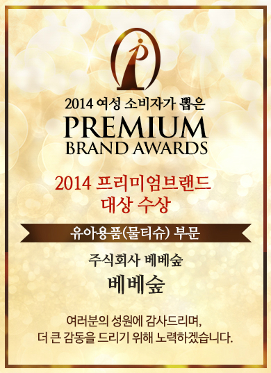 베베숲 관계자는 “이번 2014 프리미엄브랜드대상 수상은 소비자가 직접 뽑아준 상인 만큼 그 의미가 남다르다”며, 소비자들의 사랑과 관심에 보답하기 위해 더욱 안심하고 사용할 수 있는 좋은 품질의 물티슈를 연구∙개발해 나갈 것”이라고 말했다.