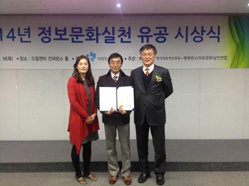 2014 정보문화실천유공 장관표창은 미래창조과학부가 주최하고 한국정보화진흥원과 정보문화포럼 행복한 스마트문화 실천연합이 주관하는 행사로 건전하고 창조적인 정보문화실천운동에 적극적으로 참여한 민간단체, 교육기관, 지자체, 개인 등에 대한 표창이 이뤄졌다.