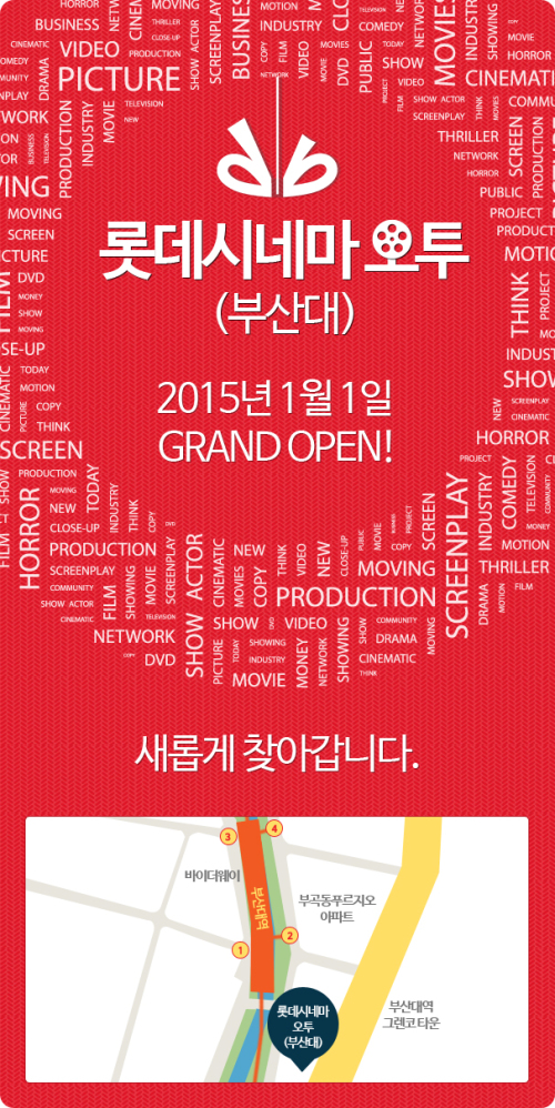 롯데시네마는 2014년 부산 최대의 영화관 ‘롯데시네마 광복’을 개관하고, 2014년 12월 말 ‘롯데시네마 구리아울렛’, ‘롯데시네마 동부산’을 개관하여 대한민국 대표 멀티플렉스로서 그 역할을 다하고 있다. ‘롯데시네마 오투(부산대)’는 “쾌적한 관람환경과 수준 높은 서비스를 관람객들에게 제공하고, 지역민들이 즐겨찾는 문화공간이 될 수 있도록 노력할 것”이라고 전했다.