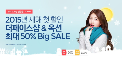 옥션(www.auction.co.kr)은 10일까지 겨울 필수 화장품라인인 보습크림을 비롯한 더페이스샵 베스트 상품을 최대 50% 할인가에 판매하는 한편, 옥션단독 추가 20% 할인쿠폰(매일 ID당 1매, 최대금액 5천원)을 제공한다. 또한 행사상품 2만원 이상 구매고객 선착순 1만명에게는 20000원 옥션 이머니를 지급한다. (행사기간 중 ID당 1회)