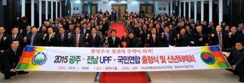 광복과 분단 70년을 맞는 2015년 새해를 맞아 천주평화연합(이하 UPF)과 (사)남북통일운동국민연합(이하 국민연합)은 ‘통일조국 창건의 주역이 되자’는 주제로 광역시도별 출정식을 가졌다.