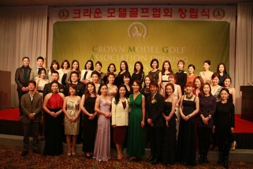크라운모델골프협회 구성원이 창립행사에서 기념촬영을 하고 있다. 홍경호 크라운모델협회 부회장(앞줄 왼쪽 첫번째) 김관효 회장(왼쪽에-서 7번째) 왕종근 고문(왼쪽에서 8번째)