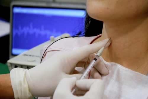 연축성 발성장애 치료법으로는 약물요법, 음성치료 및 수술적 치료 등이 있으며 최근에는 보톡스 주입이 가장 효과적인 치료법으로 사용되고 있다. 예송이비인후과 음성센터 김형태 원장은 “보톡스 치료는 경련이 일어나는 다양한 성대근육에 주사를 통해 직접 보톡스를 극소량 주입하는 방법으로 4~6주 간격으로 시술을 받게 되며, 주사 후 성대근육의 경련이 해소되면서 목소리가 개선된다”며, “보톡스 치료 후 음성치료를 통해 올바른 발성훈련법을 배워 음성의 오남용을 줄이는 재활 훈련을 실시하는 것이 도움이 되며, 수시로 후두마사지를 해주는 것도 좋다”고 말했다. 후두마사지는 갑상연골(목젖)의 양쪽 목 부분을 따라 2~3cm 위로 올라간 지점을 약간 아프고 묵직한 느낌이 들도록 수시로 마사지하면 성대 피로를 풀어줄 수 있다.