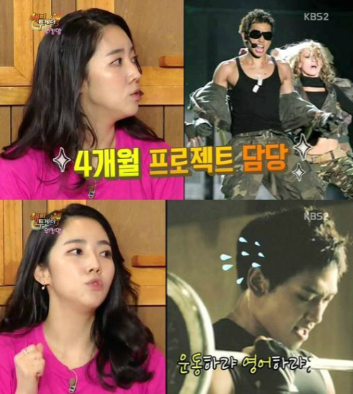 이윤진은 이어 "아무것도 안 주고, 4개월 후 공연을 하니 100% 영어로 하고, 인터뷰, 프레스 컨퍼런스는 50%로 말할 수 있게 하라더라. 그 때 비 씨가 드라마 촬영을 하고, 홍콩, 중국, 일본에서도 프로모션이 많으니 밴에서 수업을 하고 스태프처럼 따라다녔다"고 밝혔다.