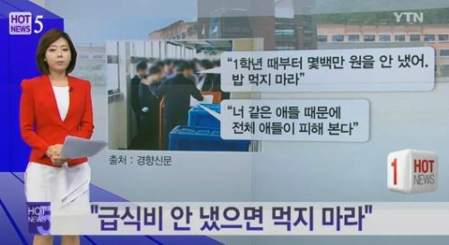 이어 충암고의 한 교감은 전체 학생들이 지켜보는 가운데 급식비를 못 낸 학생들에게 몇 달 치가 밀렸는지 말했다. 여기에 "내일부터는 오지 말라"는 말도 덧붙였다.