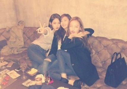카라 구하라는 최근 자신의 인스타그램을 통해 "청바지 자매들"이라는 글과 함께 사진을 게재했다. 공개된 사진 속에는 다비치 강민경, 제시카, 구하라가 나란히 앉아 카메라를 바라보며 포즈를 취하고 있다.