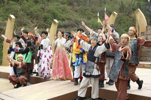 | 문화관광부에서 지정한 문화관광축제(우수등급)인 대가야체험축제는 올해 10회를 맞아 ‘대가야의 융성’을 주제로 다음달 9일부터 나흘간 진행된다. 지난해 축제에서 공연팀이 관객을 향해 인사하는 모습. 한국관광공사 제공 |
