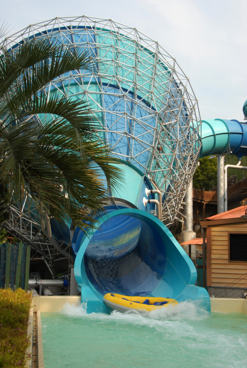 쉽게 말해 상하로 구불구불한 트랙을 빠르게 이동하며 급상승과 급하강을 반복하는 롤러코스터(티익스프레스)와 좌우 진자 운동을 통해 무중력 체험을 할 수 있는 바이킹(콜럼버스 대탐험)의 재미를 한데 모은 신개념의 복합형 물놀이 시설이라고 할 수 있다.