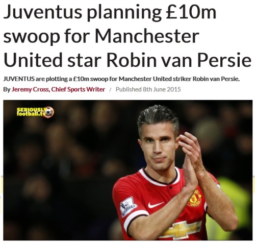 영국 일간 데일리스타는 8일(한국시간) 유벤투스가 골잡이 카를로스 테베스(31)의 공백을 메우기 위한 대책으로 잉글랜드 프리미어리그 맨체스터 유나이티드의 최전방 공격수 판 페르시 카드를 생각하고 있다고 보도했다. 올 시즌 유벤투스의 세리에A 우승을 이끈 테베스는 프랑스의 생제르맹의 영입 명단에 올라 있다. 또한 테베스는 고향인 아르헨티나의 보카 주니어스로 복귀해 은퇴 준비를 하는 방안도 고려하는 것으로 전해졌다. 이 때문에 유벤투스는 1000만 파운드(약 171억원)를 지급하고 판 페르시를 이적시키는 방안을 고려 중이라는 설명이다.