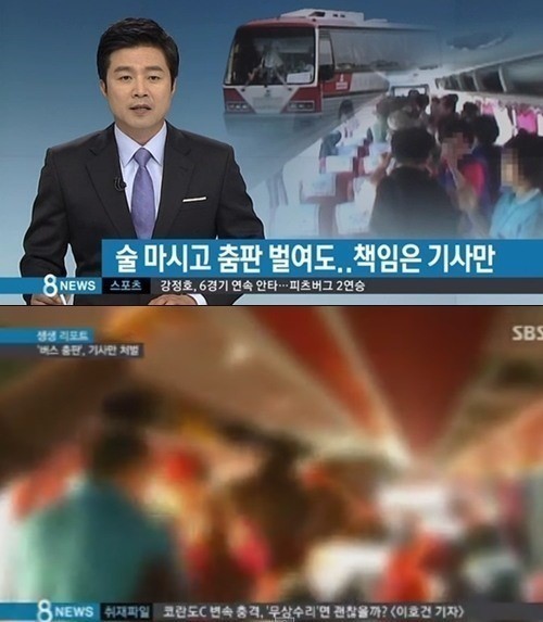 18일 오후 열린 방송통신심의위원회 방송심의소위원회에서 SBS ‘8시뉴스’가 지난달 24일 ‘관광버스에서 술 마시고 춤판…처벌은 기사만’ 편을 보도하며 관련 영상에 일베 회원이 만든 음악과 함께 내보낸 것에 대해 ‘방송심의에 대한 규정 제20조(명예훼손 금지) 제2항’과 ‘제27조(품위 유지) 5호’를 적용해 다수 ‘주의’ 의견으로 전체회의에 회부했다.