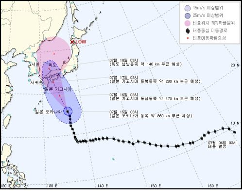 | 제9호 태풍 낭카 예상 진로 기상청 자료 |