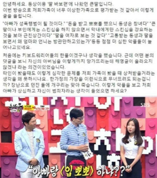 “악플을 보고 저희 아빠가 상심하고 자신이 범죄자란 생각이 들었으면 하는가