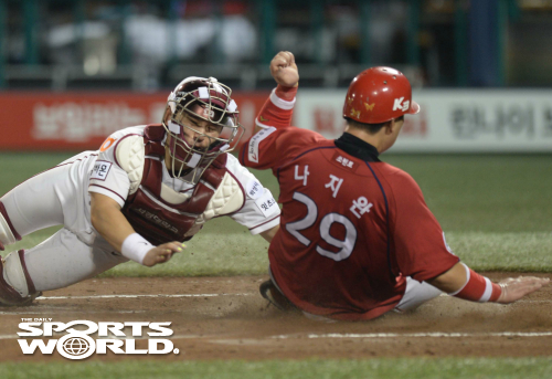 [SW포토] 득점 성공하는 KIA 나지완 기사입력 2015-08-04 20:46:33 기사수정 2015-08-04 20:46:33 글씨 크기 선택 가장 작은 크기 글자 한 단계 작은 크기 글자 기본 크기 글자 한 단계 큰 크기 글자 가장 큰 크기 글자 [스포츠월드 김용학 기자] 프로야구 KIA 타이거즈의 나지완(29번)이 4일 목동구장에서 열린 넥센 히어로즈와의 경기 7회초 2사 2루 박찬호의 안타때 홈에서 득점을 하고 있다. 목동=김용학 기자 yhkim@sportsworldi.com 2015.08.04 [ⓒ 세계비즈앤스포츠월드 & sportsworldi.com, 무단전재 및 재배포 금지] 메뉴보기 페이스북 공유 트위터 공유 url 공유 더보기