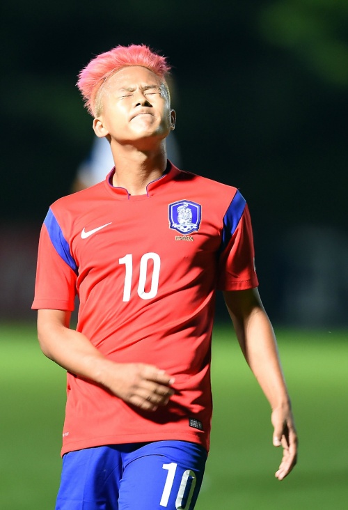 과연 핑크색 헤어스타일은 어떤 의미였을까. 스포츠월드 취재 결과 눈물겨운 감동의 비밀이 숨겨져 있었다. 이승우는 29일 파주NFC에서 치러진 연세대와의 연습경기에 모습을 드러냈다. 오는 2일 막을 올리는 ‘2015 수원 컨티넨탈컵 U-17 국제청소년축구대회’을 앞두고 경기력을 점검하기 위한 경기였다. 30분 3세트제로 치러진 이날 경기에서 이승우는 1, 2세트에 출전해 페널티킥을 유도, 직접 키커로 나서 골을 터트렸다. 이 모습을 지켜보던 이승우의 최측근 관계자는 조심스럽게 이승우의 헤어스타일에 담긴 뒷얘기를 꺼냈다.