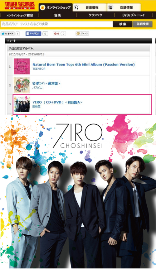 이번 초신성의 정규 앨범 ‘7IRO’는 발매 직후 오리콘 차트 1위를 차지하고, 데일리차트에서도 TOP 3에 등극하는 등 일본 내 초신성의 인기를 실감하게 하고 있다. 또한 시부야 타워 레코드의 주간 종합 순위에서도 TOP 3에 진입하는 등 한류를 이끄는 그룹이라는 칭호에 걸맞는 모습이다.