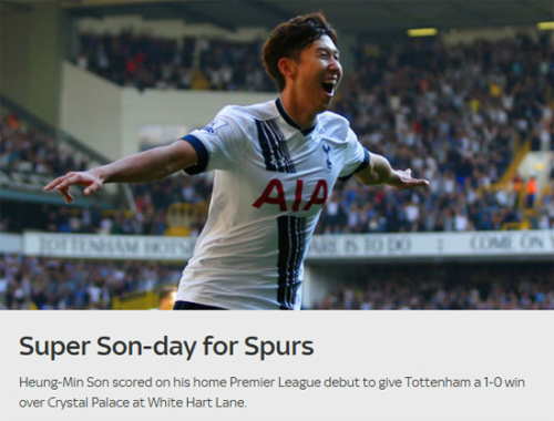 손흥민(토트넘)의 EPL 데뷔골 소식을 알렸다.