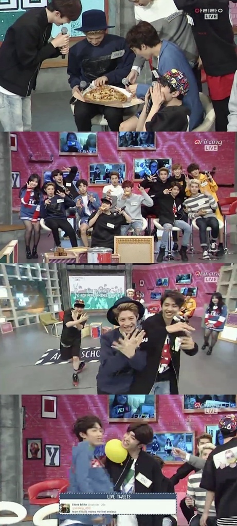 업텐션은 29일 오후 생방송으로 진행된 아리랑TV '애프터스쿨 클럽'에 데뷔 앨범 ‘一級秘密(일급비밀)’의 타이틀곡 ‘위험해(SO, DANGEROUS)’로 전세계 케이팝 팬들의 큰 관심을 받으며 한 시간 동안 팬들과 즐거운 시간을 보냈다.