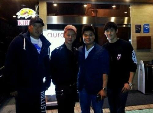 사진 속에서 추신수, 류현진 선수와 함께 시아준수와 형 김준호 네 명이 나란히 서서 친분을 과시하고 있다.