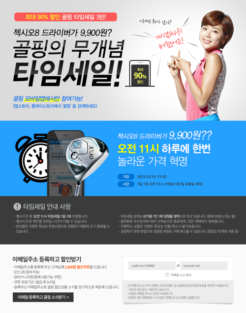 또, 다음 달 5일까지는 매일 오전 11시 선착순을 통해 골프용품을 최대 90% 할인해주는 타임세일도 함께 진행된다.