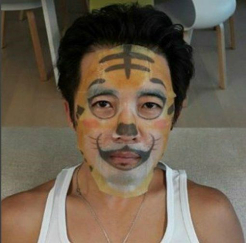 사진 속 안재욱은 호랑이 얼굴 모양 마스크팩을 얼굴에 붙인 모습이다.
