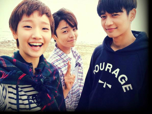 공개된 사진 속 박소담은 배우 김민재와 샤이니의 민호와 함께 인증샷을 남겼다.