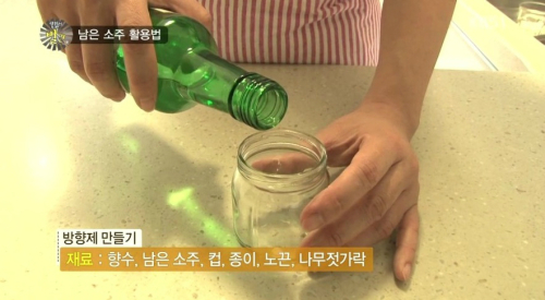 남은 소주 활용법으로는 알콜 휘발성을 이용해 방향제를 만들 수 있다.