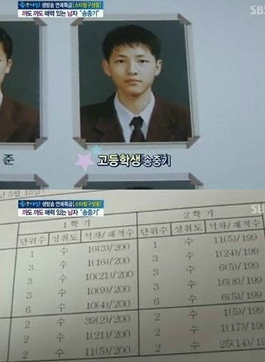 과거 방송된 SBS '좋은 아침'에서는 송중기의 고교 졸업사진과 함께 성적이 공개됐다.