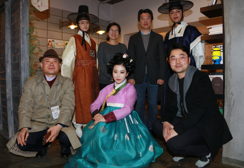| <▲(위)와지트 출범 및 네이버 웹툰 '퍼스트스위트' 연재 기념식에 나선 김병헌 대표이사(왼쪽부터) 조주희 작가, 김세훈 영화진흥위원회 위원장, 도도(김강섭)작가 ▼(아래)브랜드웹툰 '퍼스트스위트' 연재를 함께 자축하는 작가들과 해태제과 임직원들> |