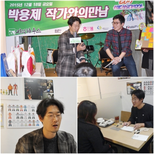 박 작가는 지난 18일 서울 마포구 합정동 소재 복합문화공간 ‘와지트’에서 갈라쇼를 열었다. 윤태호, 강풀, 강도하 등 1세대 웹툰 작가들보다 후발주자지만 자립적인 족적을 남겨 온 그는 ‘학원물’이란 전통 기법을 사용, 자신만의 색감으로 스토리를 입혀 팬들의 사랑을 받고 있다. 최근엔 ‘2015 대한민국 문화콘텐츠대상-만화부문’에서 대통령상을 수상했다.