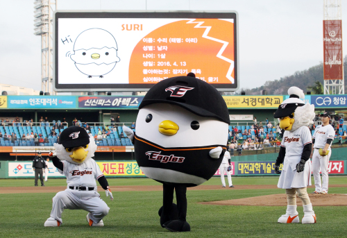 서른살 동갑내기 마스코트 위니와 비니 사이에 태어난 한 살배기 수리는 알을 깨고 나오면서 처음 본 것이 야구공으로 야구공을 엄마라고 생각해 야구공만 보면 졸졸 쫓아다니는 귀여운 아기 마스코트이다. 한화 관계자는 “앞으로도 팬들의 응원에 보답하고자 다양한 이벤트를 지속적으로 시행할 예정”이라고 전했다. niners@sportsworldi.com, 사진=한화 이글스 제공