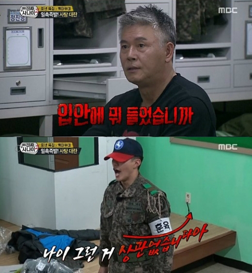 이동준은 17일 오후 '진짜사나이' 중년특집에서 육군 백마부대 신병교육대대에 입소한 모습이 그려졌다.