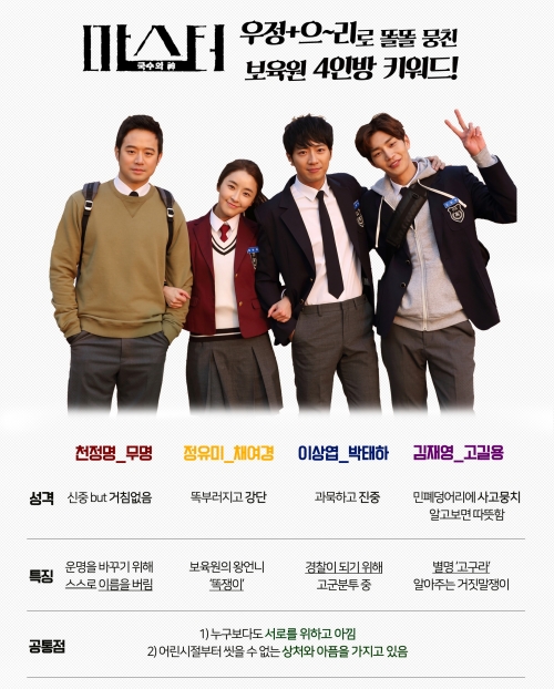 운명을 뒤바꾸기 위해 스스로 이름까지 버린 천정명은 신중하면서도 거침없는 반전 성격을 지니고 있으며 정유미는 보육원의 왕언니답게 똑 부러지고 남다른 강단을 지녔다. 또한 경찰을 꿈꾸는 청년 이상엽은 과묵하고 진중한 성격의 소유자이며 학교에서 소문난 거짓말쟁이라서 일명 ‘고구라’로 불리는 김재영은 민폐 덩어리에 사고뭉치 같지만 알고 보면 따뜻한 마음씨를 가졌다고.