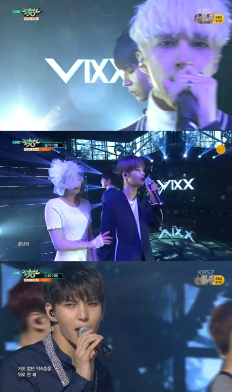 그룹 빅스가 22일 방송된 KBS2 음악프로그램 '뮤직뱅크‘에서 '손의 이별'과 타이틀곡 '다이너마이트'를 열창했다.
