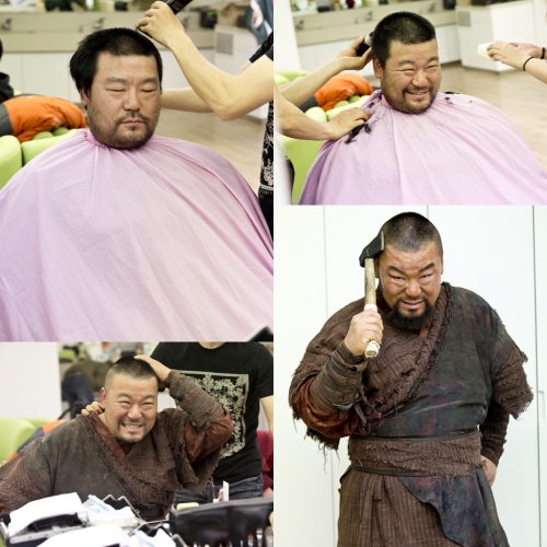 육귀신 역의 배우 조경훈은 남다른 각오로 ‘대박’에 합류했다. 극 중 강렬한 캐릭터를 더욱 생생하게 표현하기 위해 삭발을 결심한 것이다. 이에 조경훈은 첫 촬영 전 대기실에서 삭발을 감행했다. 이에 ‘대박’ 제작진은 삭발을 하면서도 유쾌함을 잃지 않은 조경훈의 모습을 공개했다.
