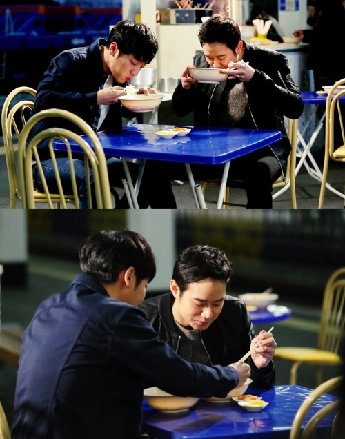 KBS 2TV ‘태양의 후예’ 후속 새 수목드라마 ‘마스터-국수의 신’의 천정명(무명 역)과 이상엽(박태하 역)이 화기애애한 분위기 속에서 국수를 먹고 있어 이목을 끌고 있다.