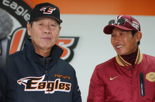 ‘야신’ 김성근 한화 감독과 ‘염갈량’ 염경엽 넥센 감독이 펼치는 지략 대결에서 파생된 극장 야구, 일명 ‘히글스극장’이 17∼18일 청주구장에서 절찬 상영됐다. ‘히글스극장’은 히어로즈의 ‘히’와 이글스의 ‘글스’에서 파생된 별칭이다.