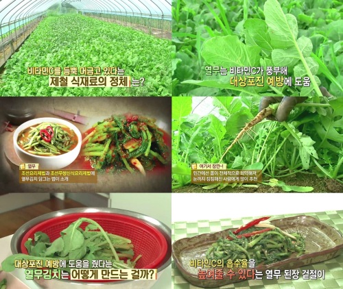 단, 열무 섭취 시 주의할 점은 있다. 김소형 한의학 박사는 “열무에는 100g당 칼륨이 772mg들어있다. 신장 질환 환자가 열무를 과도하게 섭취할 때 몸 속 칼륨양이 증가해서 근육을 약하게 하거나 심장에 여러 가지 악영향을 미칠 수 있으므로 그 양을 제한해서 섭취하는 것이 좋다. 때문에 열무를 섭취할 때는 하루에 150g이상은 섭취하지 않는 것을 권한다”고 당부했다. 방송은 14일 일요일 밤 9시 40분.