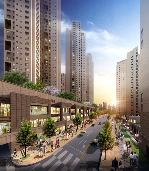 마르쉐 도르 애비뉴는 서울시 금천구 독산동 일대에 조성된다. 작년 4월 분양해서 단기간에 완판을 기록한 3차 단지(1236가구 규모)의 지하 1층~지상 2층에 들어서며 총 190여개 점포로 구성된다. 복합단지 내 약 260m 길이의 카페거리를 사이에 둔 대면상가형 스트리트몰로 조성될 계획이다.
