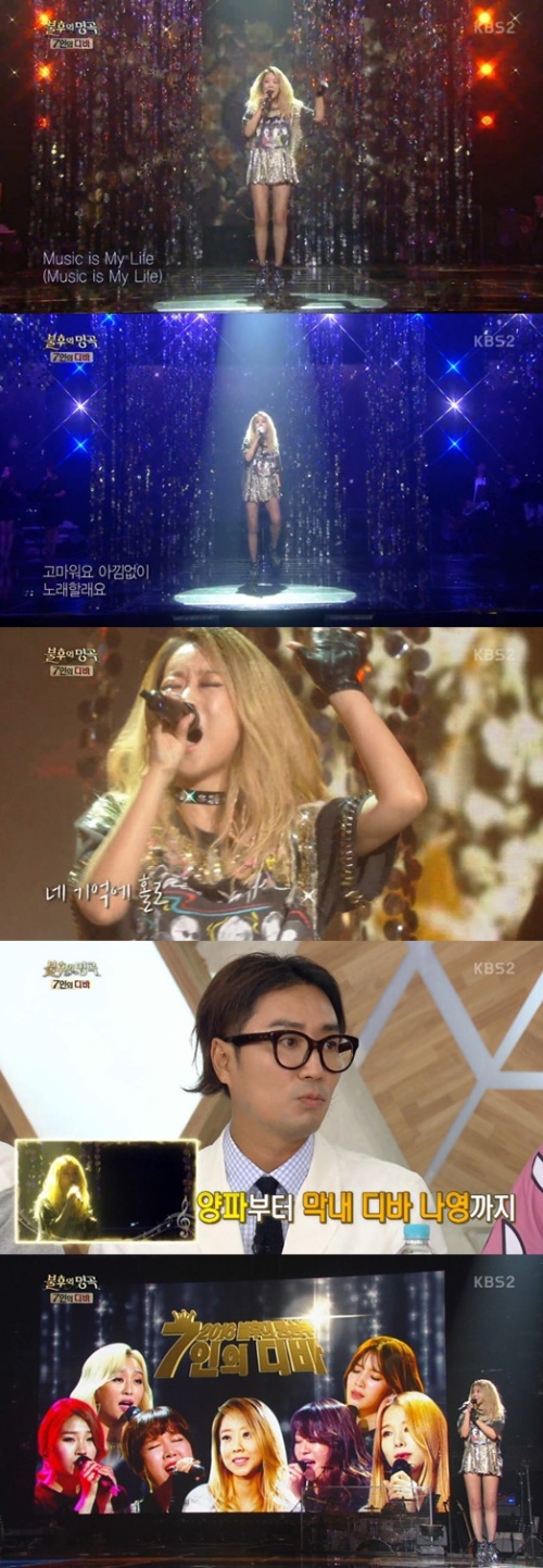 자신의 데뷔곡인 '애송이의 사랑'을 시작으로 임정희의 'Music is my life', 빅마마의 'Break away', EXID의 '위아래', 씨스타의 '나혼자', 손승연의 '미운오리새끼', 김나영의 '홀로'까지 그야말로 디바 7인의 삶의 응축된 감동적인 무대였다. 여기에 애절함과 파워풀함을 자유자재로 오가는 보이스와 섬세한 디테일로 관객의 뜨거운 호응을 끌어내며 역대급 무대를 완성했다.