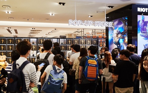 22일 라이엇 게임즈에 따르면 이 회사가 최근까지 경기도 판교 현대백화점에 개소했던 ‘롤’(‘리그 오브 레전드’의 줄임말) 팝업스토어는 한 달 동안 5만 명이 넘는 방문객들로 북적거렸다. 휴무일을 빼면 하루 평균 2000명 이상 들른 셈이다. 개장 첫날(7월 15일)에는 팝업스토어 1시간 전부터 팬들이 줄을 서서 입장을 기다리는 진풍경이 벌어지기도 했다.