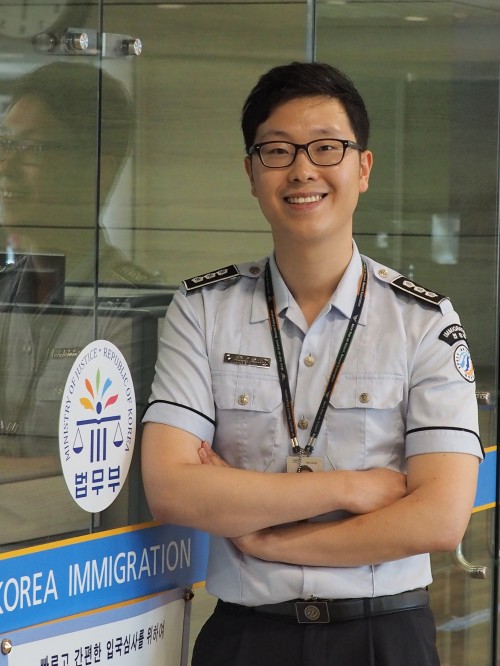 "주변 지인분들이 법무부 출입국관리사무소에 대한 이미지는 많이 엄숙하고 차갑다고들 많이 말씀해주신다. 저 역시도 국경을 담당하는 부분에서 마냥 따스함만은 있으리라 생각이 들지는 않았다. 직접 종사하게 되면서 많은 생각의 변화가 있었다고 생각된다. 반드시 딱딱하고 엄중해야만 국경을 수호 할 수 있는 것이 아니라 대한민국을 방문하는 분들에게 따듯한 말 한마디로 여독(旅毒)을 풀어드리고 국익에 위해가 되는 사람에겐 엄정한 법집행을 통해 국경을 수호하고 있다. 입국 과정에 문제가 생긴 외국인에게도 강압적으로 대하지 않는다. 뒷줄에 계신 다른 분들이 위축되기 때문이다.”