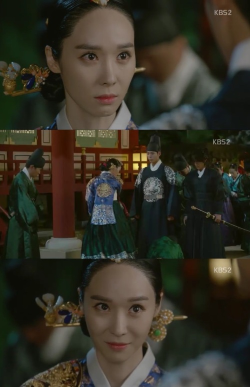 이날 7화 방송에서 한수연은 세자 박보검과 김유정을 둘러싼 남색이라는 추문을 확인하기 위해 내관과 궁녀를 상대로 인형극을 벌인 김유정을 벌해 이를 막으려는 박보검과 팽팽한 신경전을 펼쳤다. 3화에 이어 또 한 번 김유정의 뺨을 내리친 중전 한수연은 섬뜩한 미소를 흘리며 점점 악독해지는 중전으로 완벽 변신해 시청자의 눈길을 사로잡았다.