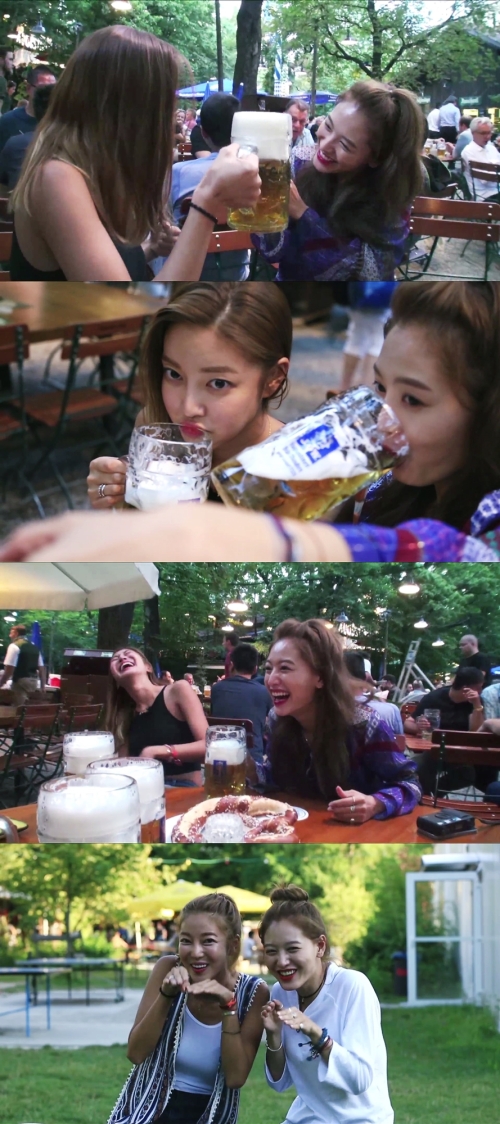 재경과 NS윤지는 맥주를 완벽하게 즐기기 위해 뮌헨 여행의 필수 코스인 ‘비어 가르텐’(맥주 정원)에 들렀다. 두 사람은 맥주 정원의 어마어마한 규모에 한 번 놀라고 약 1리터의 맥주가 들어가는 압도적인 맥주잔 크기에 두 번 놀랐다. 성공적인 여행을 위한 건배를 하고 본격적인 시음에 돌입한 두 사람은 CF를 방불케 하는 시원한 목넘김으로 진정한 맥주 먹방을 펼쳤다.