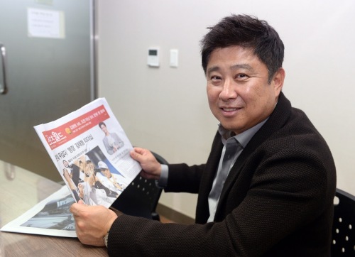 사진 김태형 감독이 스포츠월드 사무실을 찾아 인터뷰를 이어가고 있다. 김두홍 기자
