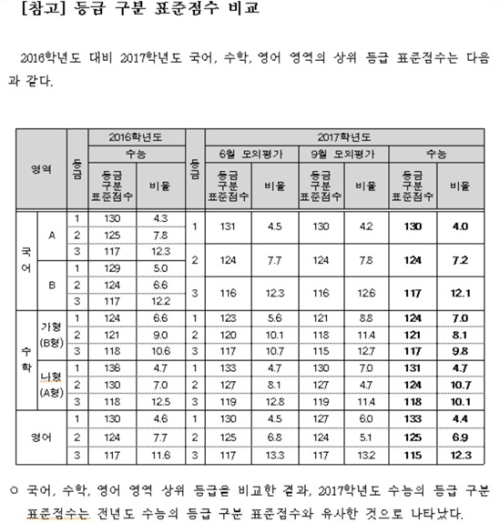 한국 교육 과정 평가원은 7 일 지난달 17 일에 치러진 2017 학년도 수학능력시험 채점 결과를 발표하고 성적표를 배부했다 .