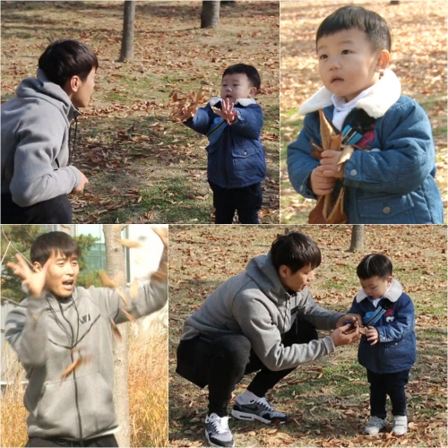 한편 대박의 정우성 패러디는 이동국의 열정이 담긴 결실이었다고 전해져 이목이 집중된다. 스틸 속 이동국은 대박에게 직접 낙엽을 쥐여주곤, 정우성 따라잡기의 팁을 전수하고 있는 모습. 대박은 아련한 눈빛으로 이동국의 얘기에 귀를 기울이며, 열심히 아빠가 가르쳐준 포즈를 따라 해 웃음을 터트린다.