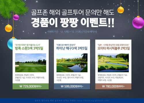 오는 31일까지 골프존 필드부킹에 태국, 중국, 일본 등 해외 골프여행 상품 견적을 문의한 고객 선착순 100명에게는 골프공 1더즌과 골프양말을 제공한다.