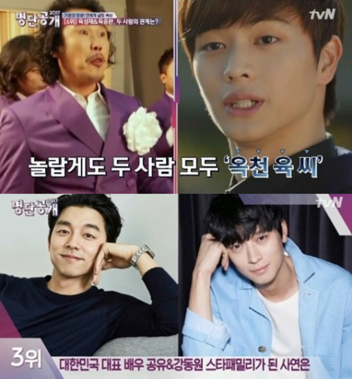 3위는 공유가 차지했다. 공유의 의외의 연예계 혈족은 강동원이었다. 공유의 조부와 강동원의 조부는 어린 시절부터 절친한 사이로, 서로 자식을 낳으면 사돈을 맺자고 약속했다. 그리고 실제 자신들의 자식을 결혼시키는 데 성공했다. 조부들의 약속으로 평소 절친한 사이였던 공유와 강동원은 서로 사돈 지간이 됐다.